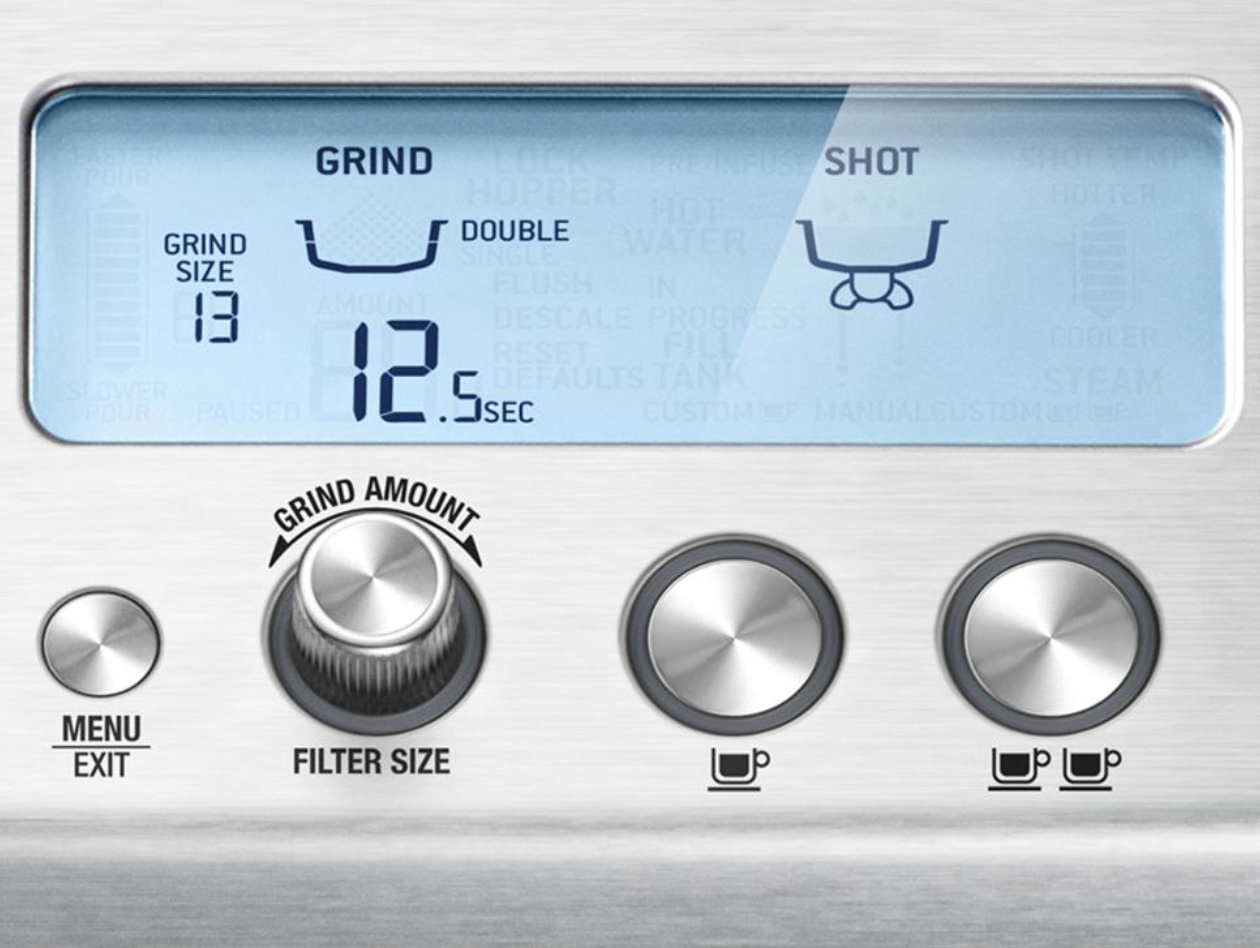 prehľadný LCD displej s informáciami o mletí a extrakcii